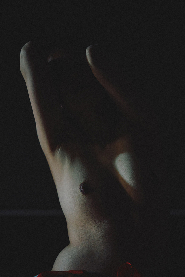 After sinking completely, only one thing remains: blood, trembling once, red. When I touch death, the inside of my skin softly collapses; when I touch life, the shadow of my bones grows indistinct. That contradiction alone is proof that I am alive. In a place unseen, untouched by anyone, defenseless and soundless, I fall apart again and again.